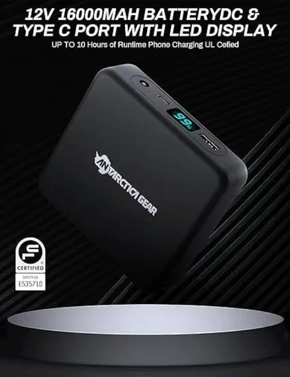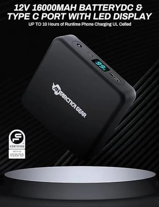 ��CARBON FIBER HEATING ELEMENTS: Heat quickly in 3 seconds, 5 carbon fiber heating elements generate heat across core body areas (front, arm area, and back) boosting your core body heat and keeping you warm. 12V Huge Capacity 16000mAh UL-Certificated power bank(packaged) No need to worry about battery life and temperature.