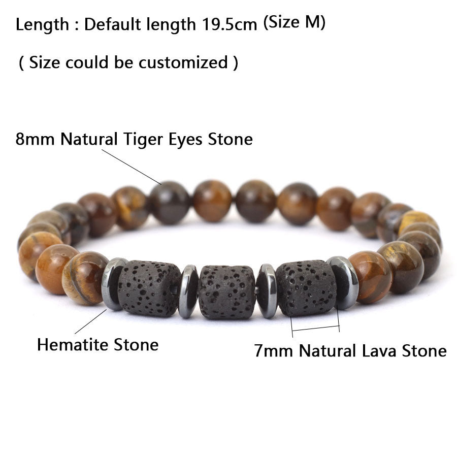 Natural Tiger Eye Volcanic Rock Beaded Bracelet